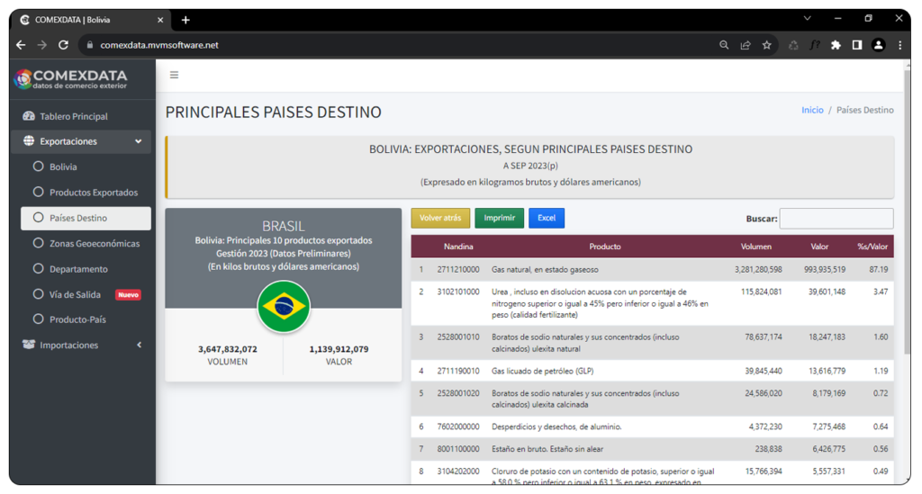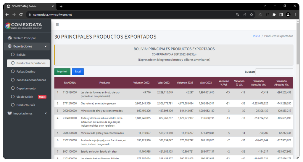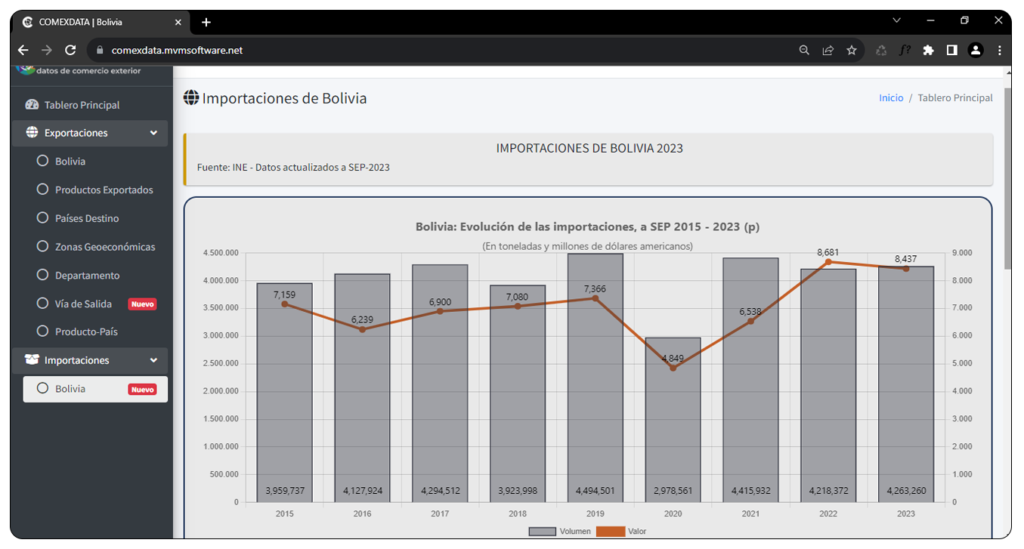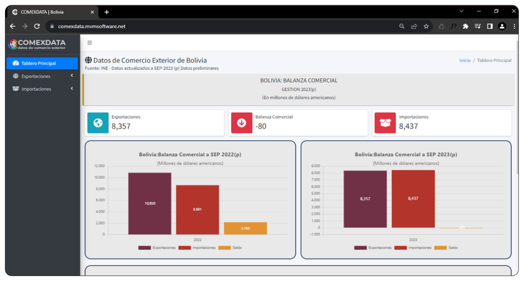 - Plataforma WEB de Información estadística de Comercio Exterior de Bolivia.
